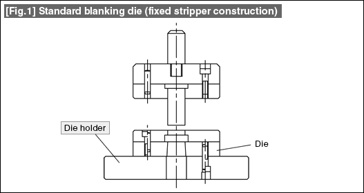 Fig.1 shows the construction of a standard blanking die. The die holder has the role of supporting the bottom die of a blanking die and becomes a clamp part for fixing the bottom die.